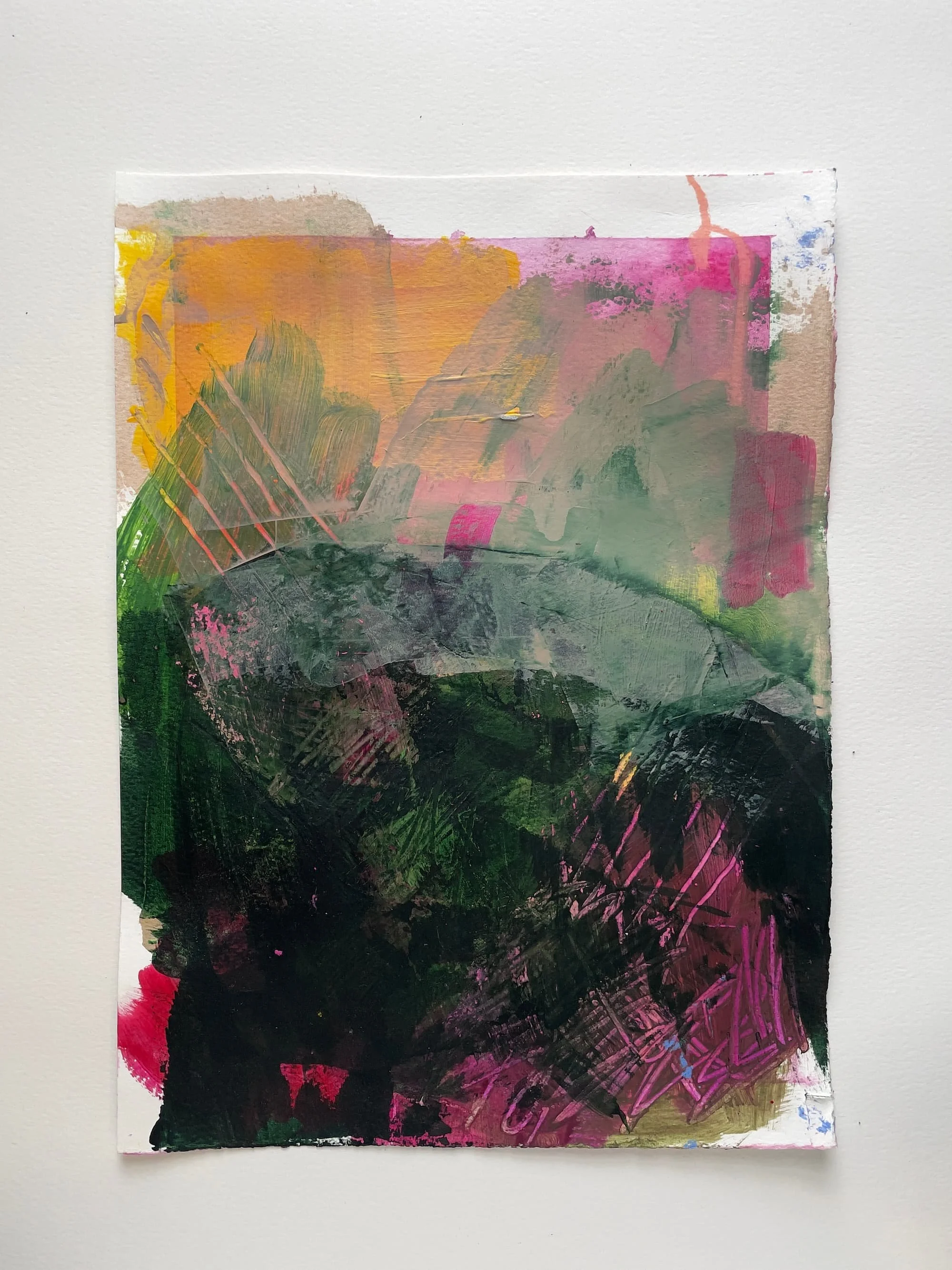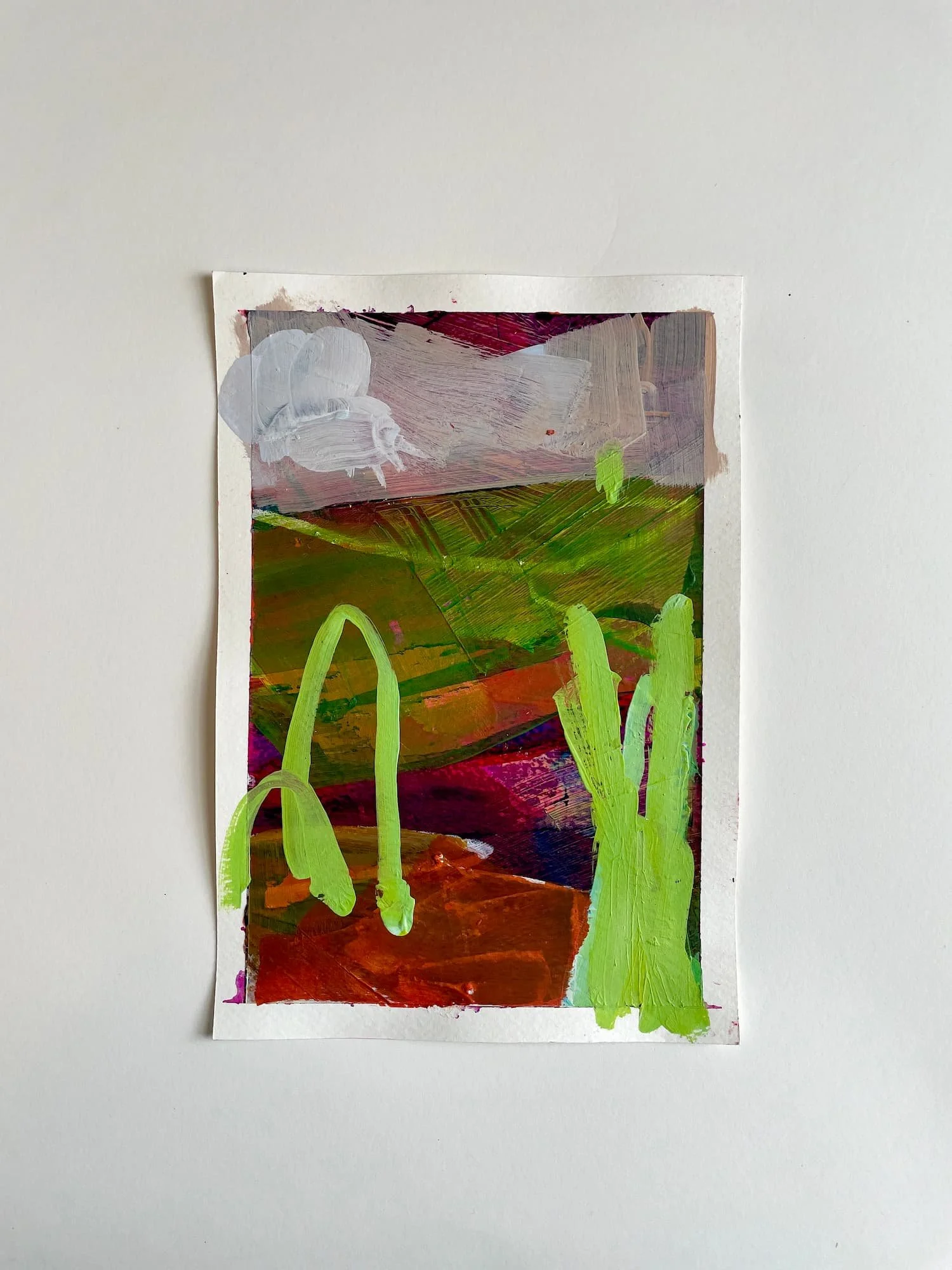 Little Dreamscape #2, 2025, acrylic on wood panel, 4"x4"